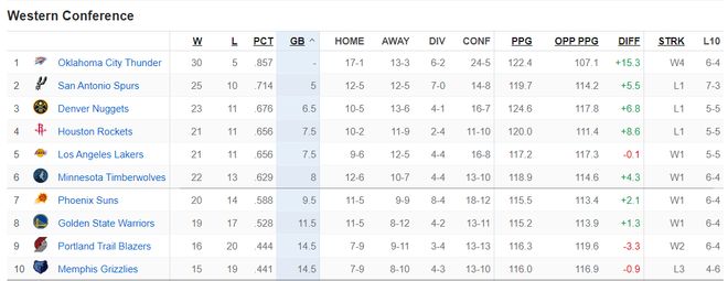 此役后勇士19勝17負(fù)繼續(xù)排西部第八的位置,他們距離西部第六的森林狼還有3.5個(gè)勝場(chǎng)差距較大。