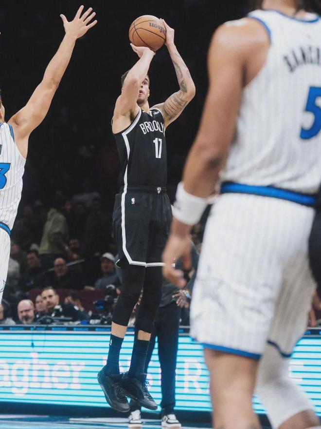 籃網(wǎng)這邊,小波特瘋狂出手18次三分球。全場(chǎng)比賽,小波特24投12中,三分18中8,罰球2中2,空砍34分5籃板1助攻3搶斷5失誤,正負(fù)值+1。小波特已經(jīng)連續(xù)7場(chǎng)比賽得分20+,他也是籃網(wǎng)隊(duì)史最快命中100記三分的球員。