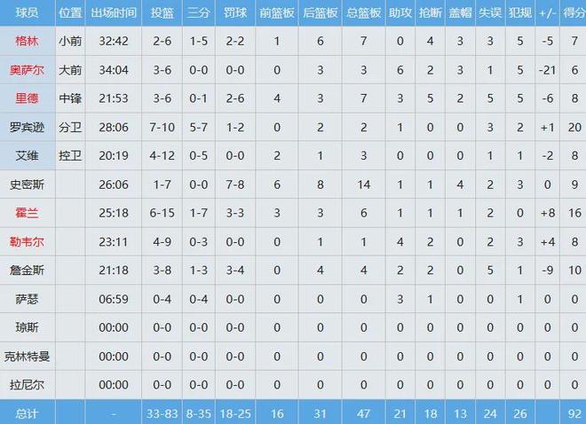 快船數(shù)據(jù)如下: