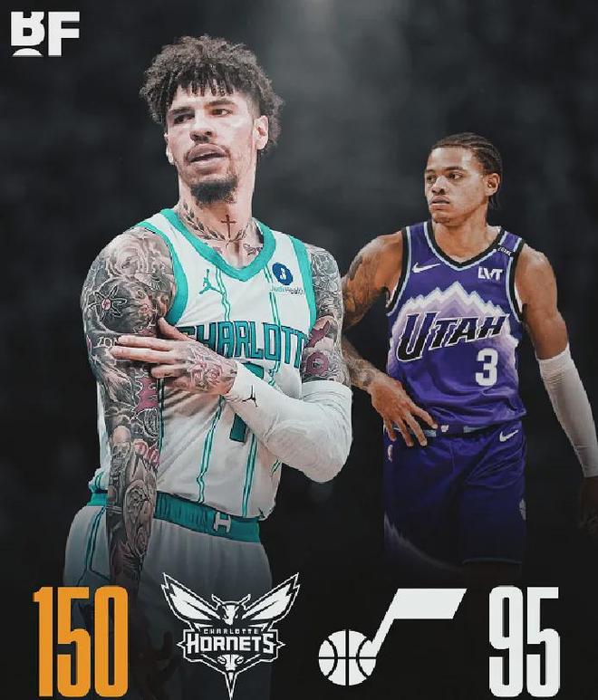 黃蜂在客場(chǎng)150-95錘爆爵士,狂勝55分之多,乃隊(duì)史最大贏球分差,同時(shí)創(chuàng)造NBA史上客場(chǎng)第三大分差,前二是57分和56分(3次)。