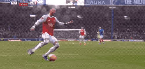 斯凱利快發(fā)任意球偷襲樸茨茅斯的防線,熱蘇斯送出彩虹傳中,馬丁內(nèi)利包抄,梅開二度。